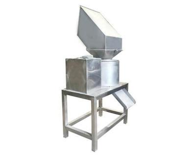 工作原理:飛刀繞自身軸線在固定不動的底刀間隙內旋轉,從而使果蔬破碎,轉子上有四組飛刀,底刀為一組,視果蔬種類不同,出料鬥有鬥式和管式兩種型式。在進料鬥上部加上緩衝裝置,可得到粒度更細的物料。