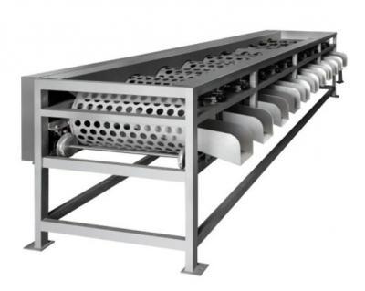 本設備是全不鏽鋼果蔬分選機械,是由上果輸送機和滾杠式分選機組成;上果輸送機通過滾杠自動旋轉來達到均勻上料,滾杠式分級機根據果蔬直徑大小來分選;